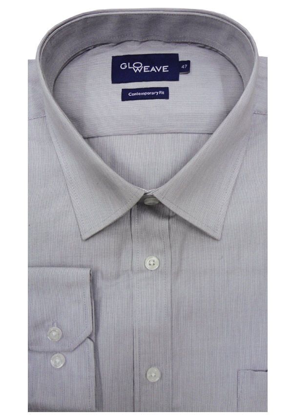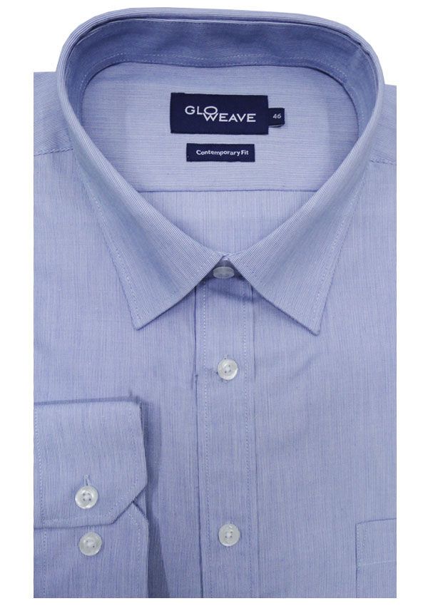 Gloweave Pinstripe long sleeve business shirt with single chest pocket. Pleated sleeve with tailored sleeve placket. Contemporary fit. Made of Cotton/Polyester.