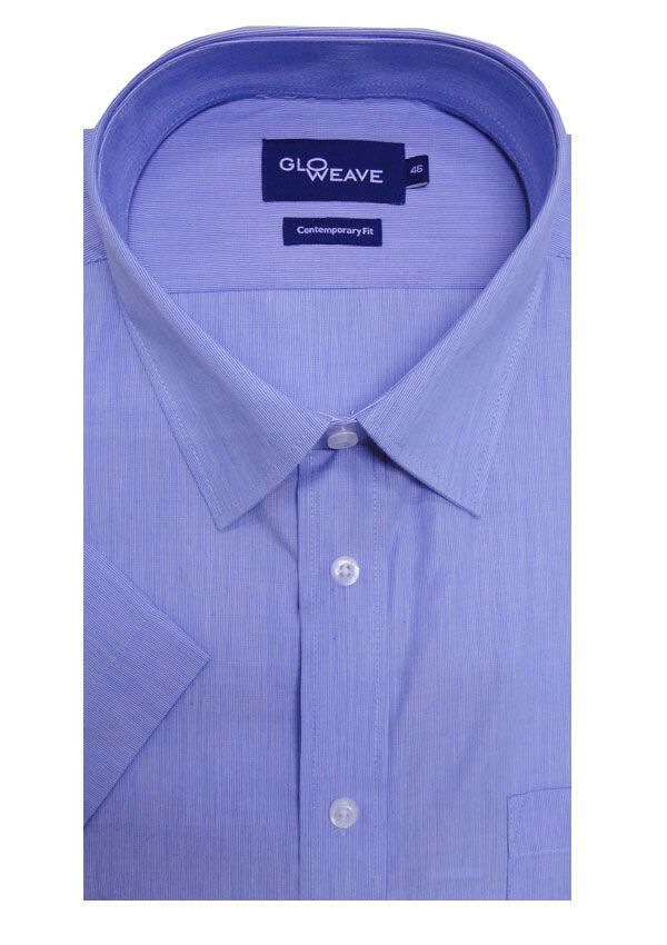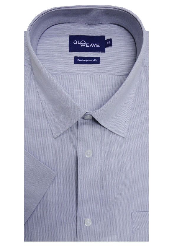 Gloweave Pinstripe short sleeve business shirt. With single chest pocket. Button collar. Made of Cotton/ Polyester.