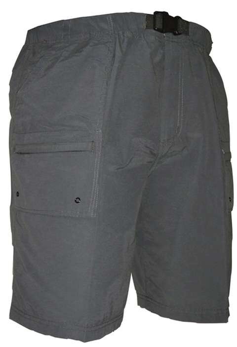 Innsbrook cargo short with elasic waist, zip and velcro fly with a clip buckle. Zip pockets on both legs and deep scoop hip pockets. Light weight cotton/nylon fabric