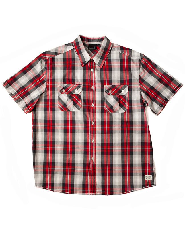 Jack Stone check patterned short sleeve shirt with twin button down chest pockets. Made of 100% Cotton.