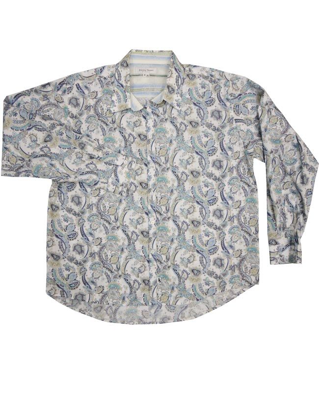 Jimmy Stuart Duke, paisley style long sleeve shirt. No pockets. 100% Cotton.