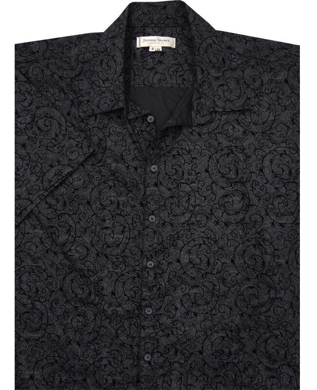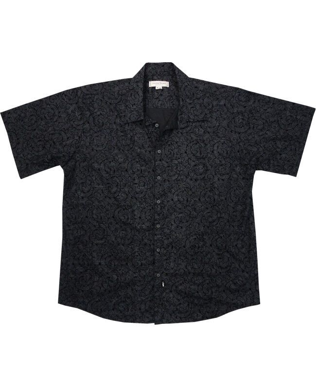 Jimmy Stuart Dutch short sleeve button up shirt with flocking print all over. Australian made. 100% Cotton.