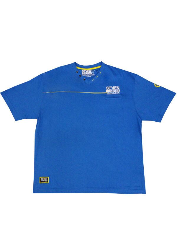 Juice Lazarati tshirt with single chest pocket. V-neck collar with buttons. Prints on chest and sleeve. Made of 88% Cotton/ 12% Polyester.