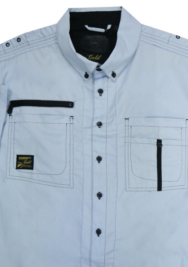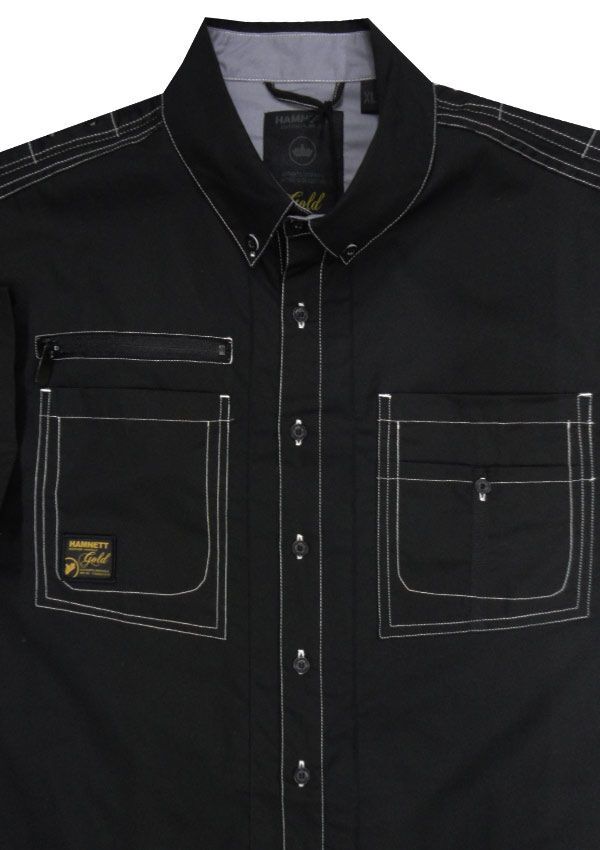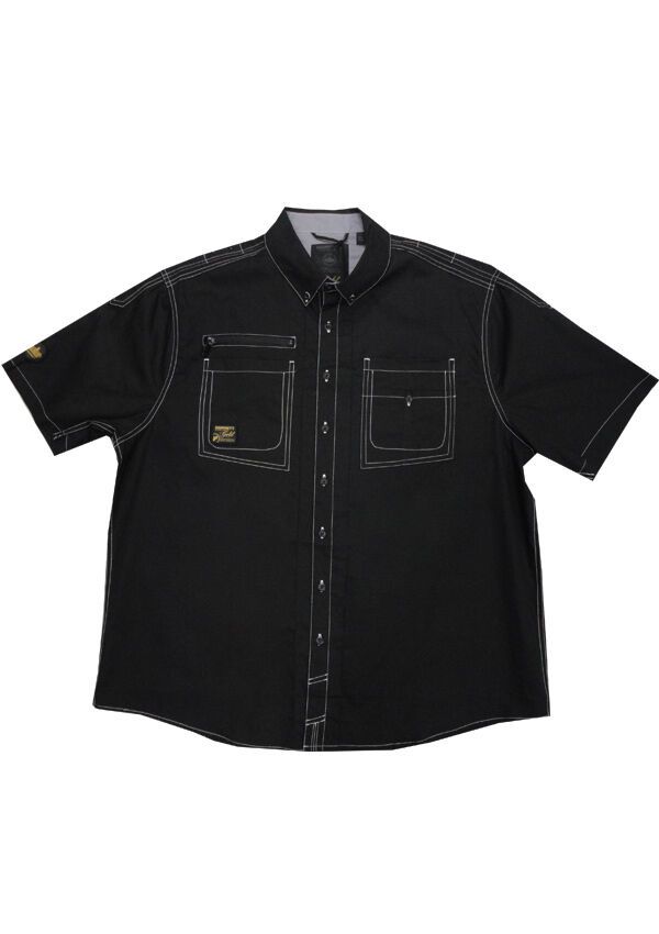 Juice Swirl short sleeve shirt. With double chest pockets. Button collar. Fake zip above pocket. Made of 100% Cotton.