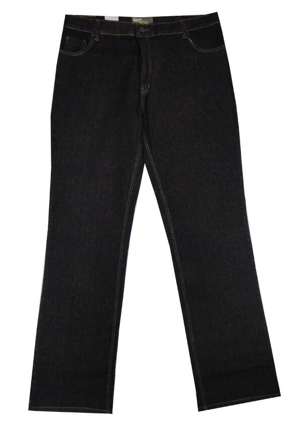 Kam Black Stretch jeans with zip fly and belt loops and five pockets including one coin pocket. Made of 98% Cotton/ 2% Spandex.