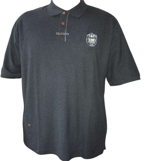 Kam Jeans cotton short sleeve polo shirt with embroidered logo, rivet buttons like you would see on jeans and stitched lines across the back of the shoulders.