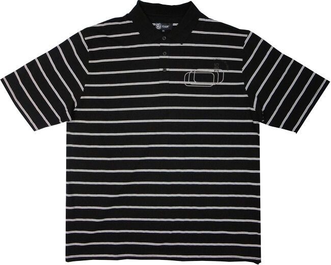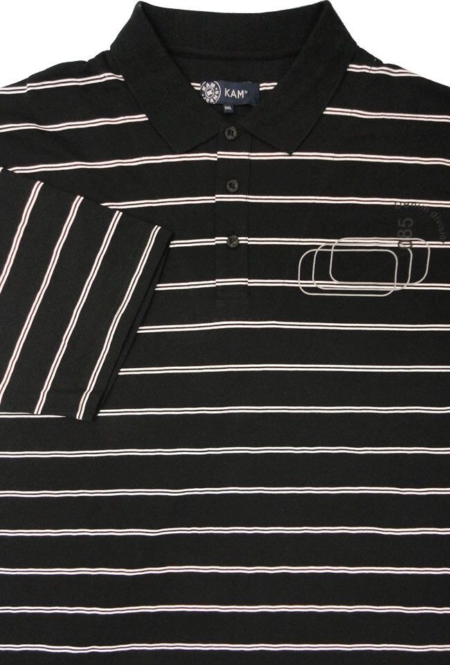 Kam Jeans short sleeve polo shirt with small print and twin striping. 100% cotton.