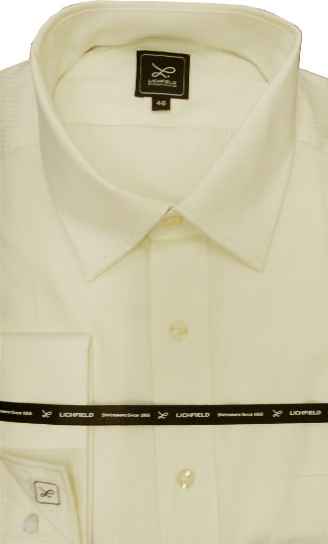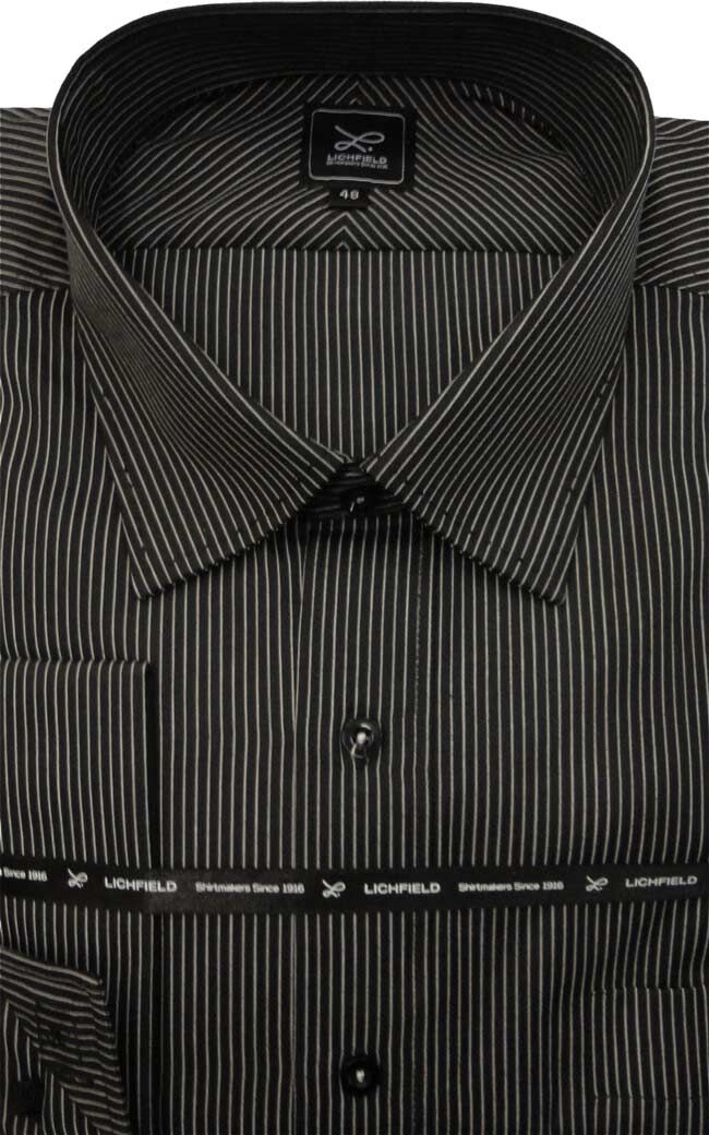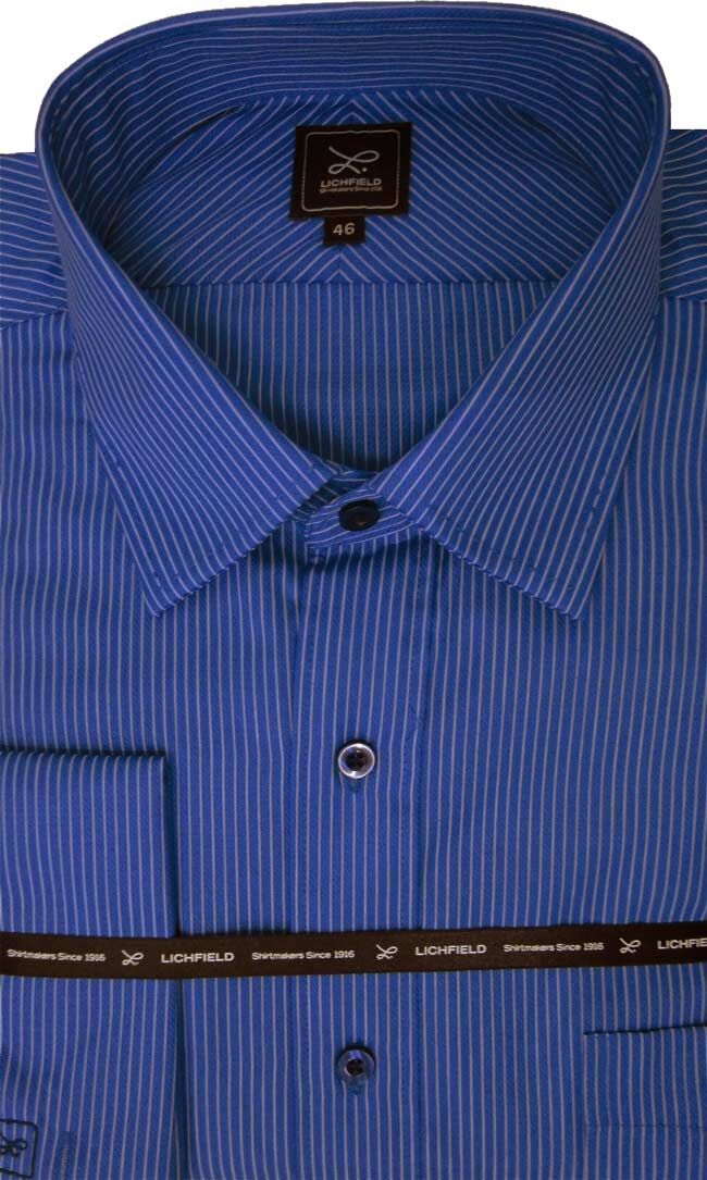 Lichfield fine stripe with long sleeves, collar attached and pocket. Made of 50% cotton and 50% polyester.