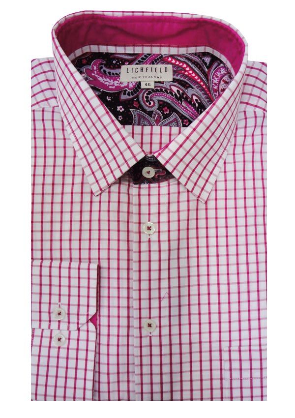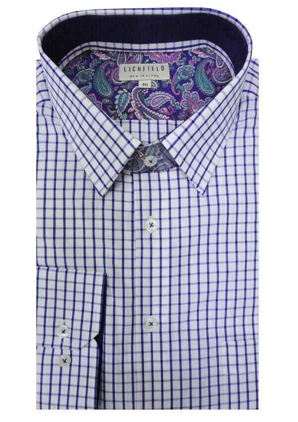 Lichfield Shadow Check long sleeve business shirt. With single chest pocket and button collar. Made of 100% Cotton.