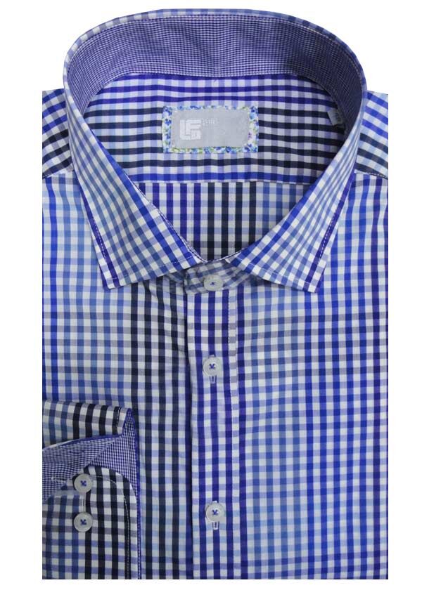 Lichfield Trim Check long sleeve business shirt. With button collar. Made of 63% Cotton/ 34% Polyester/ 3% Spandex.