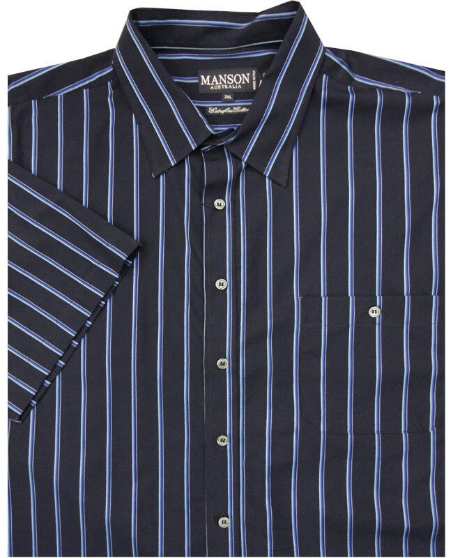 Manson highlight striped short sleeve shirt with single chest pocket. Made of Cotton/ Polyester.