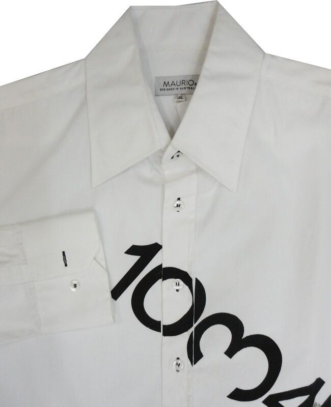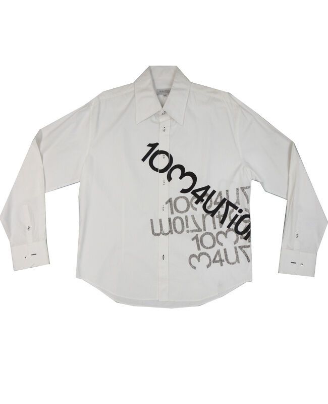 Maurio long sleeve shirt with text print across torso. Made of 100% cotton.