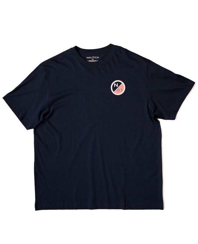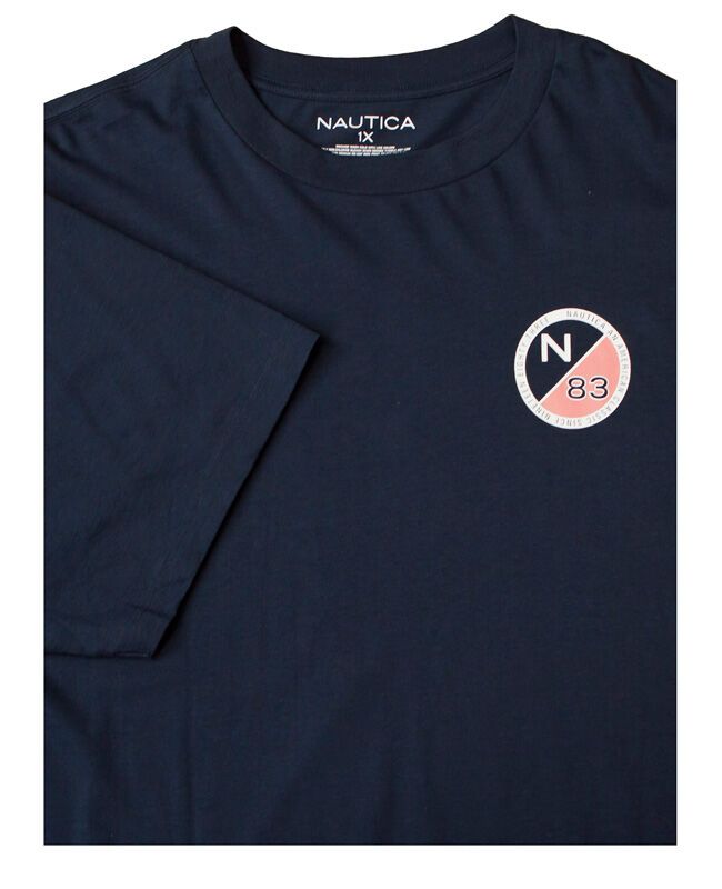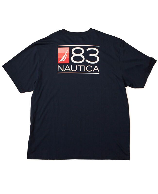 Nautica 83 short sleeve t-shirt with small print on chest and large print on back. Made of 100% Cotton.