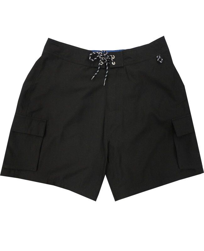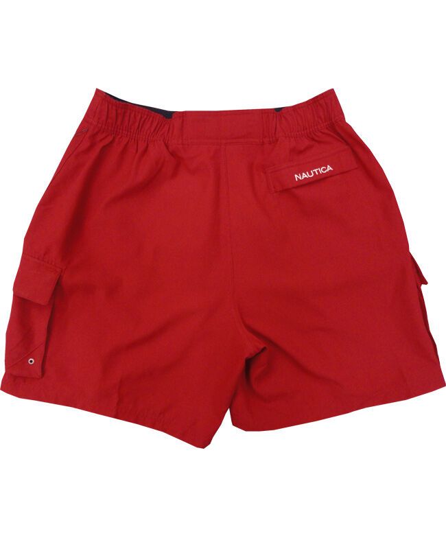 Nautica cargo boardshorts with tie up waist. Semi elastic. Two cargo side pockets. Velcro fly. Single velcro back pocket. Hidden pocket inside shorts, good to put your keys in when you're at the beach. 100% Polyester.