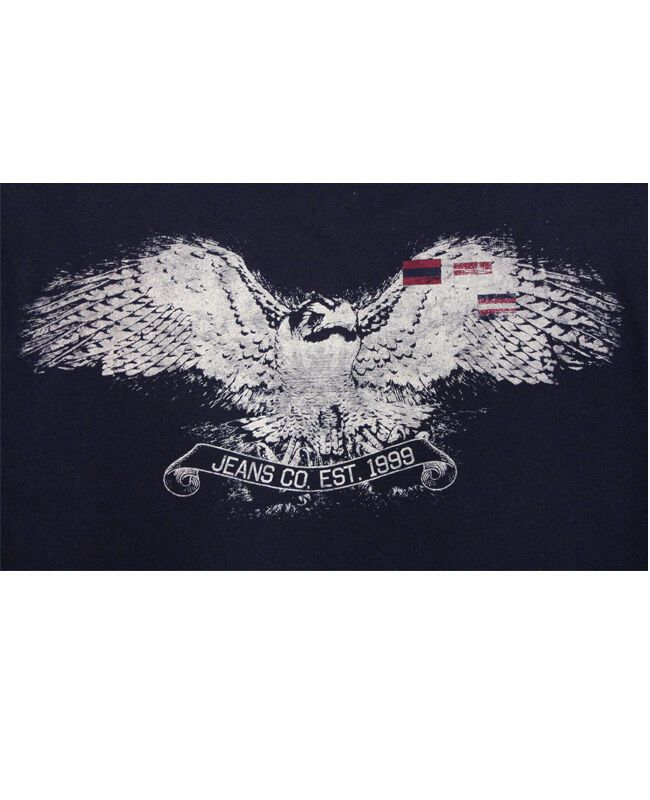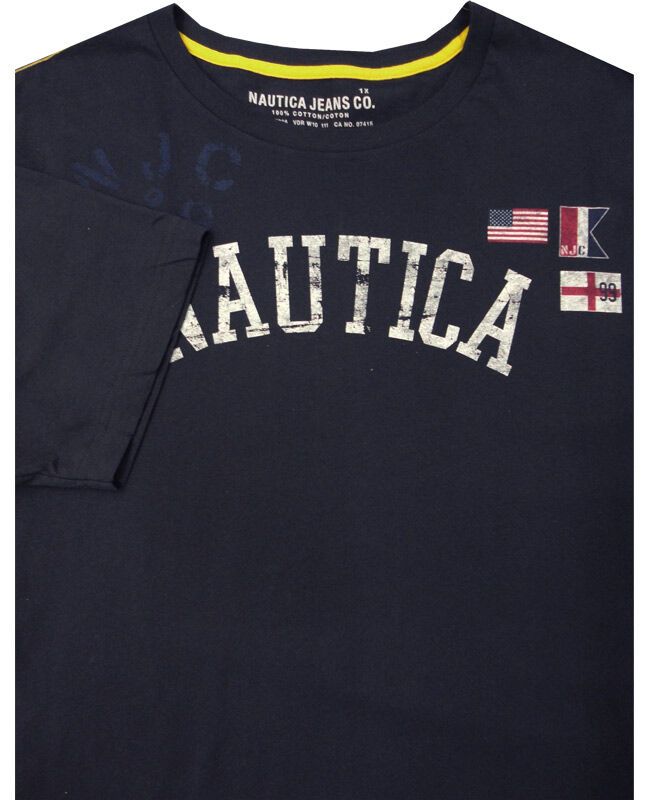 Nautica short sleeve t-shirt with large Nautica print on chest and large print of an eagle on the back. Made of 100% Cotton.