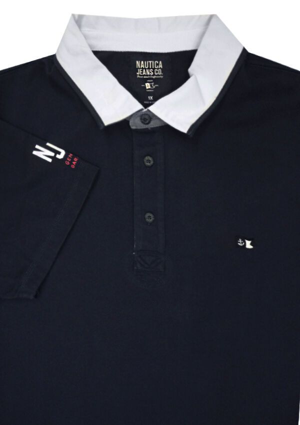 Nautica Flag short sleeve polo shirt with contrast collar. Large print on the back. Made of 100% Cotton.