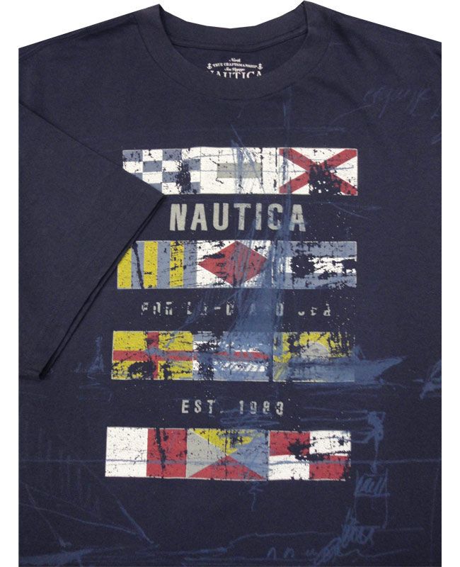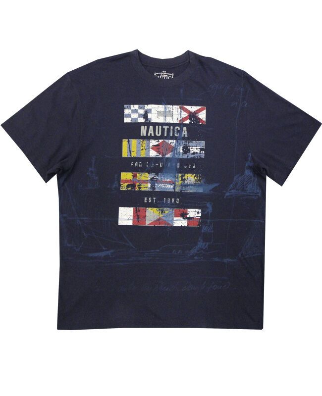 Nautica flag short sleeve t-shirt with large print on chest. Made of 100% Cotton.