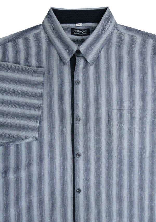 Perrone Stripe short sleeve shirt. With single chest pocket. Button collar. Soft touch fabric. Made of 73% Modal/ 27% Polyester.