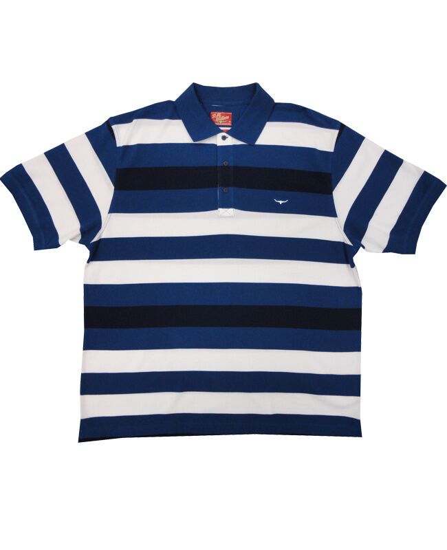 R M Williams block striped short sleeve polo with small logo print on chest. Made of 100% Cotton. No pockets.