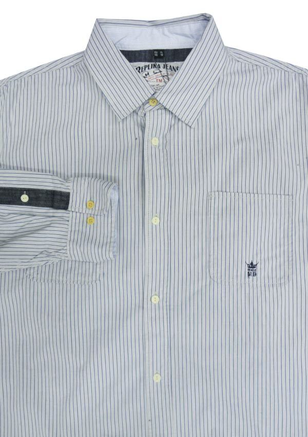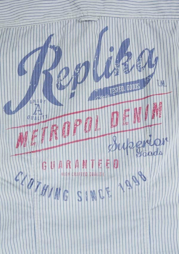 Replika Stripe long sleeve shirt.  With two chest pockets.  Button collar.  Back print.  Made of 100% Cotton.