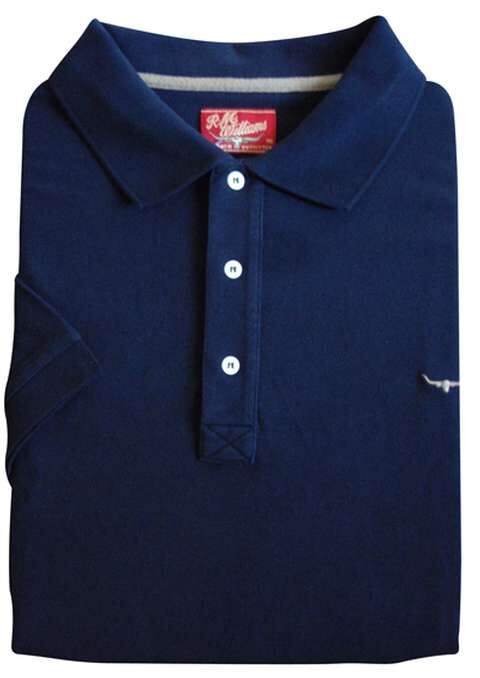 R.M.Williams basic short sleeve cotton knit polo with a small embroidered logo. No pocket.