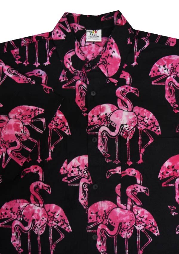 Rum Reggae Flamingo short sleeve shirt. Double chest pockets. Button collar. Made of 100% Cotton.
