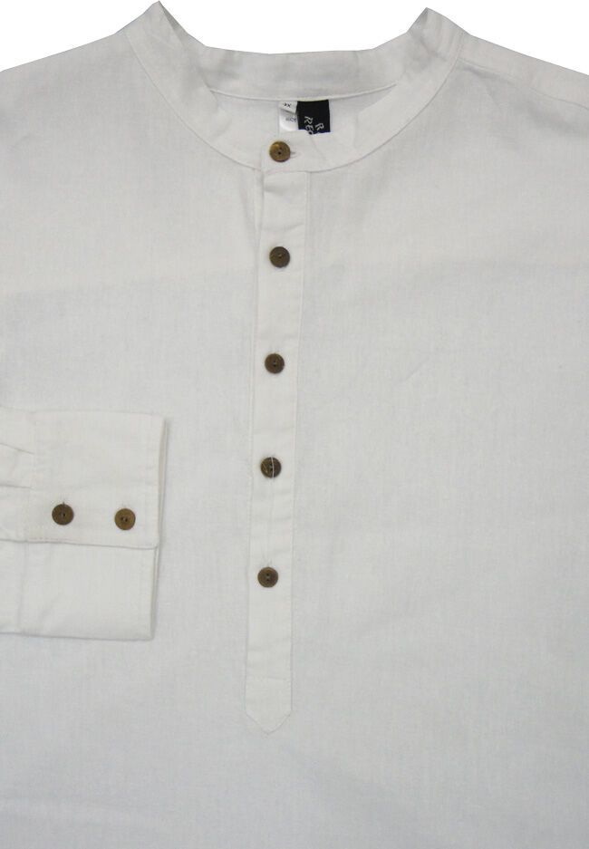Rum Reggae neru half button up long sleeve shirt with grandpa collar. Made of 100% Rayon Linen.