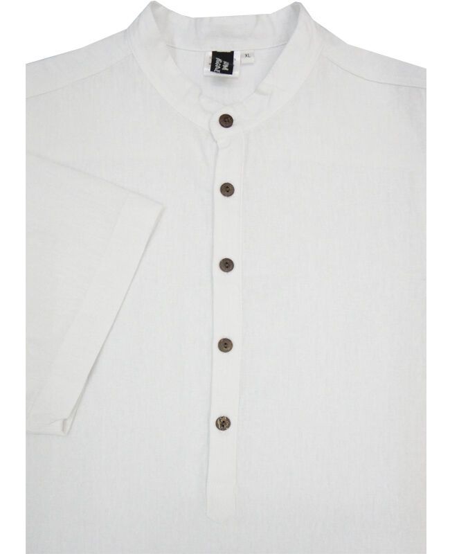 Rum Reggae neru half button up short sleeve shirt with grandpa collar. Made of 100% Rayon Linen.