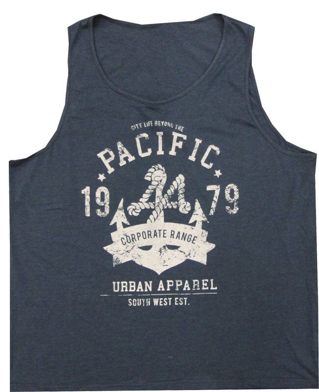 Urbanology Pacific tank top with large print on front. Made of Cotton. Chest size is as follows: L is 134cm, X0S is 138cm, 2X is 142cm, 3X is 150cm, 4X is 156cm and 5X is 160cm.